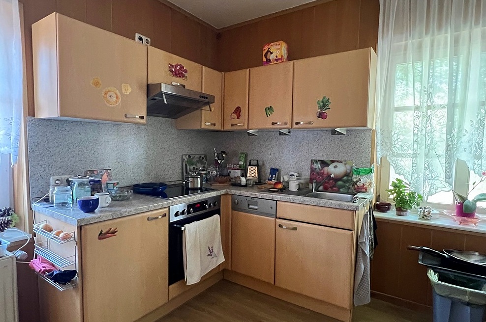 Im Inneren der Immobilie ist der Zustand teilweise renovierungsbedürftig. Die Ausstattung ist als zweckmäßig zu bezeichnen.