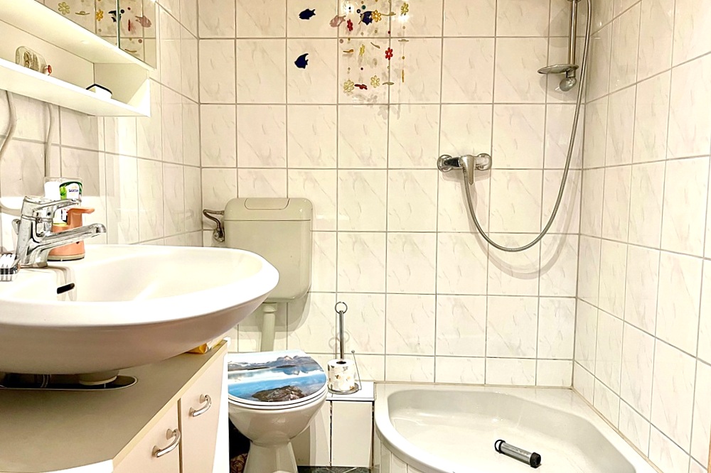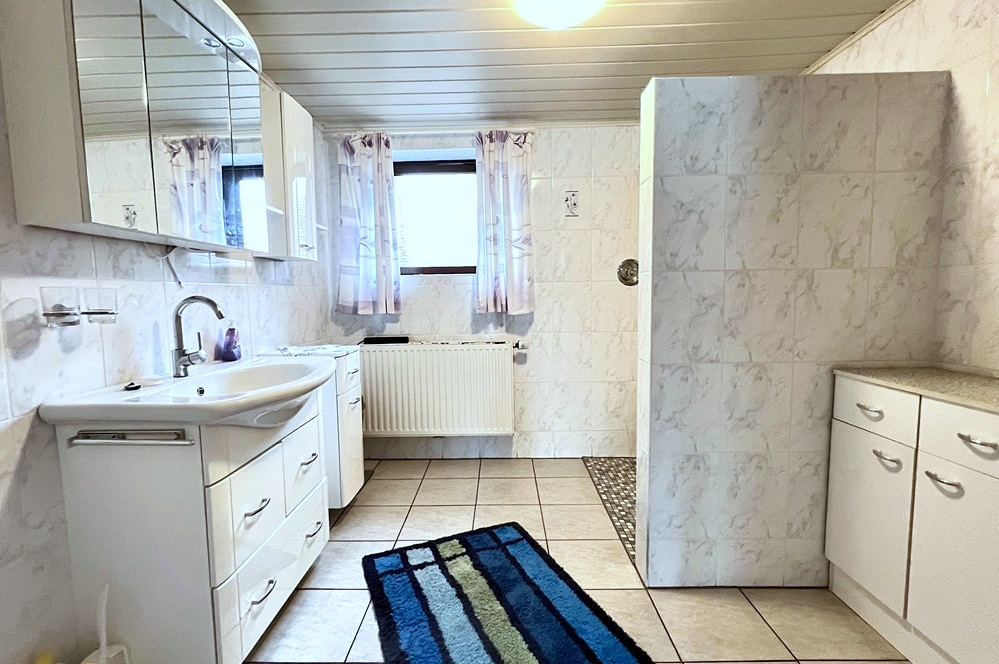 • hellgefliestes Bad mit Walk-In-Dusche, separates WC
