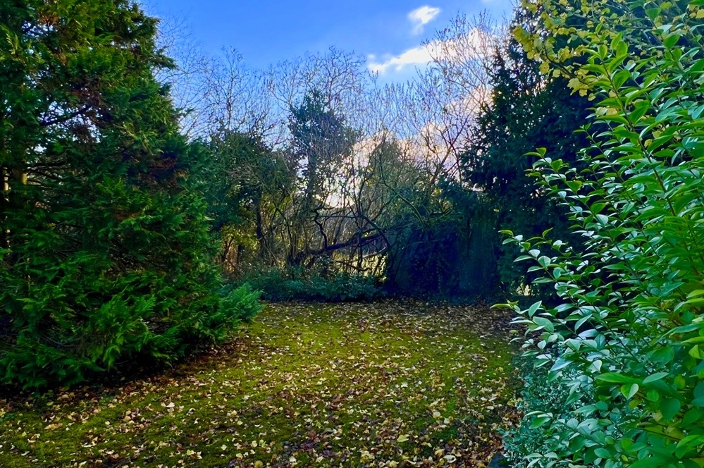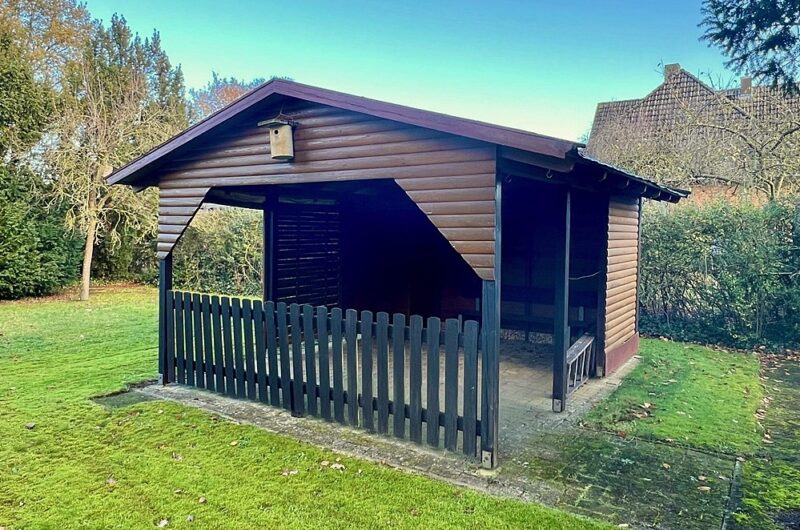 Die Werkstatt im Nebengebäude ist über eine Außentür zu erreichen. Zum Angebot gehören auch ein pflegeleichter Garten und ein überdachter Freisitz aus Holz, der sich im hinteren Teil des Grundstücks befindet.