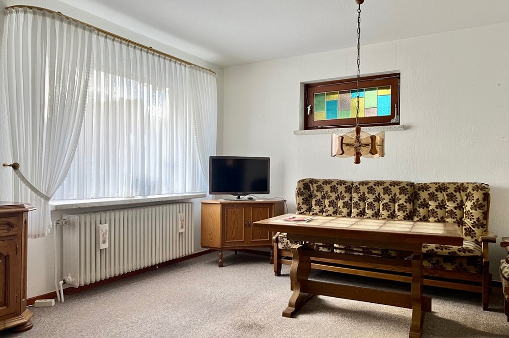 Die Immobilie wurde 1960 in Massivbauweise als Einfamilienhaus mit Einliegerwohnung und einem Teilkeller auf dem ca. 1.217 m² großen Grundstück erbaut.